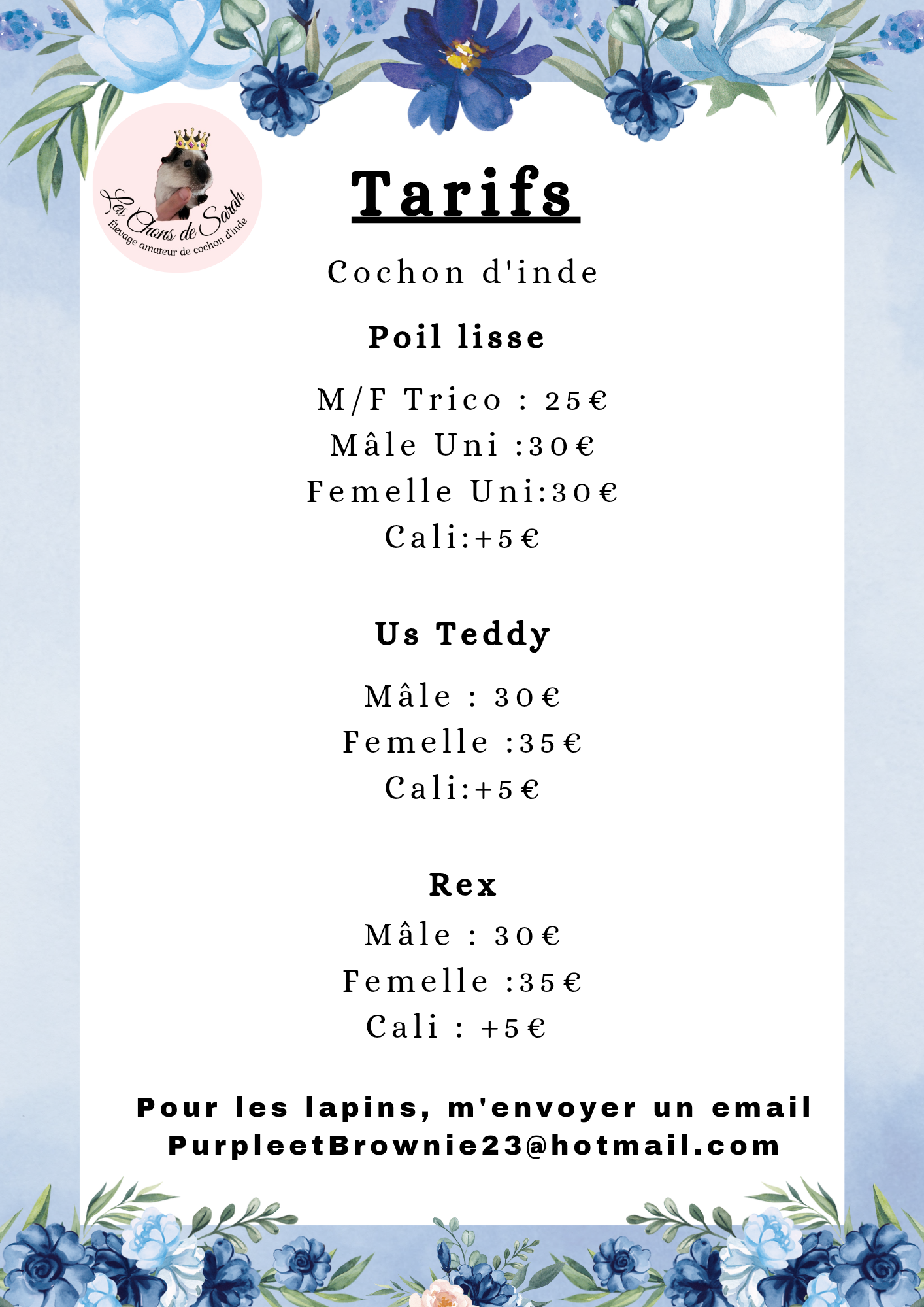 Nous proposons un livret d'accueil spécialisés adaptés aux besoins de votre cochon d'inde et lapin.