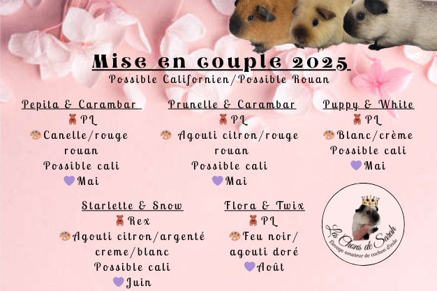 Nous proposons un visuel de nos mise en couple prévu pour ce début d'année